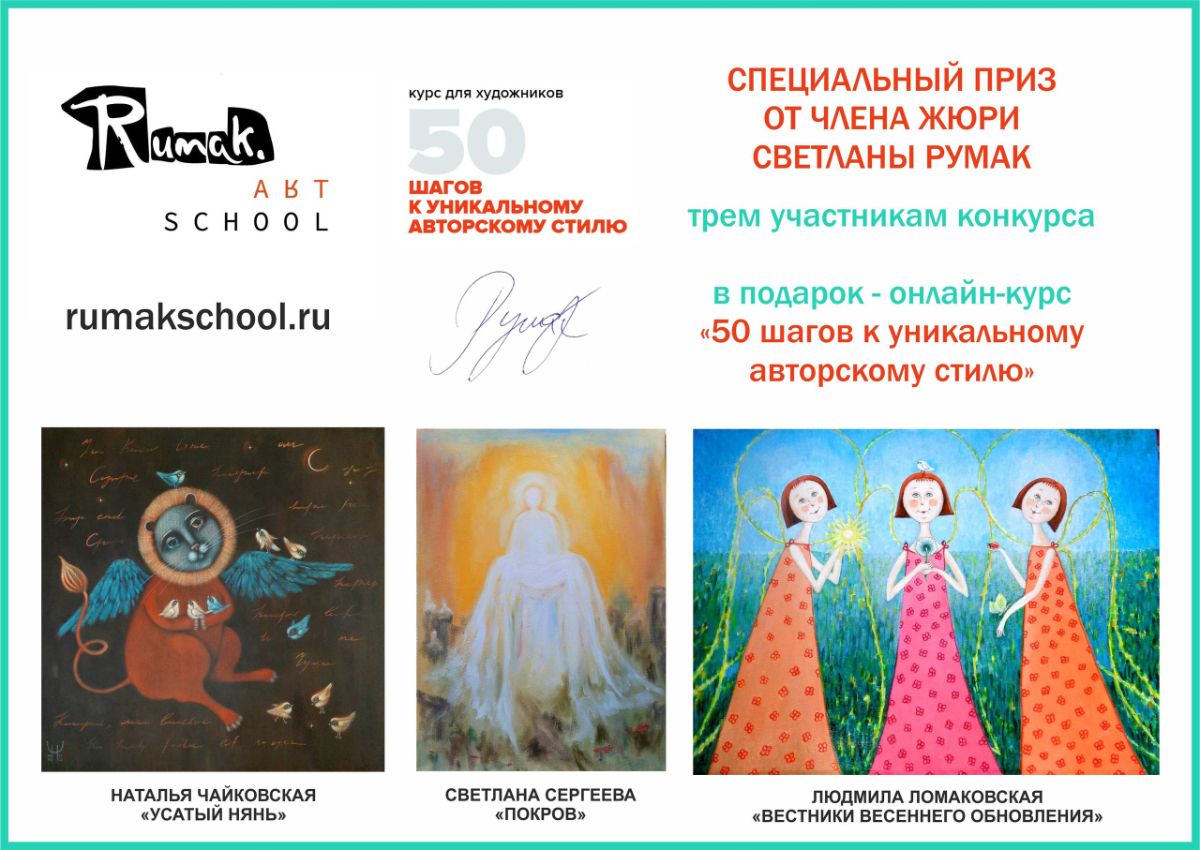 Три художника получают специальный приз от Члена жюри Светланы Румак - онлайн-курс "50 шагов к уникальному авторскому стилю".